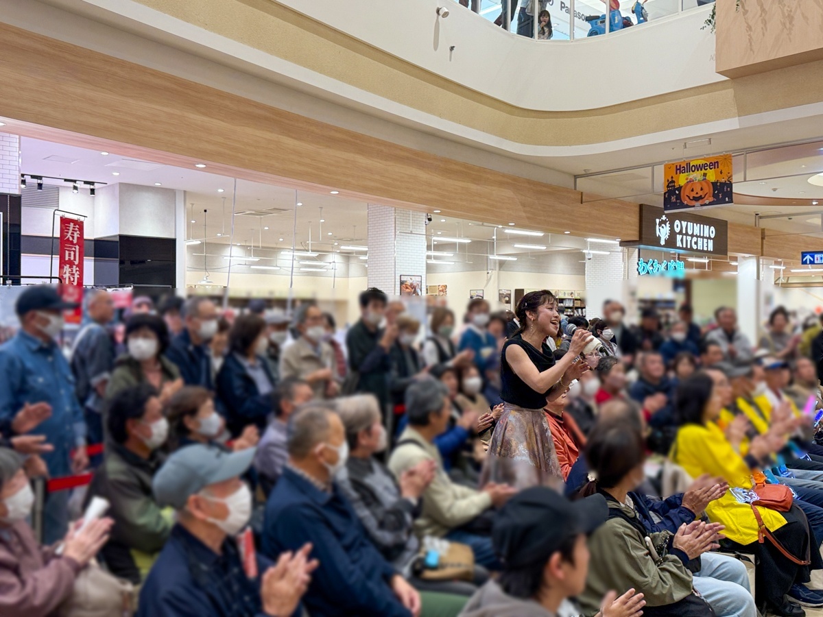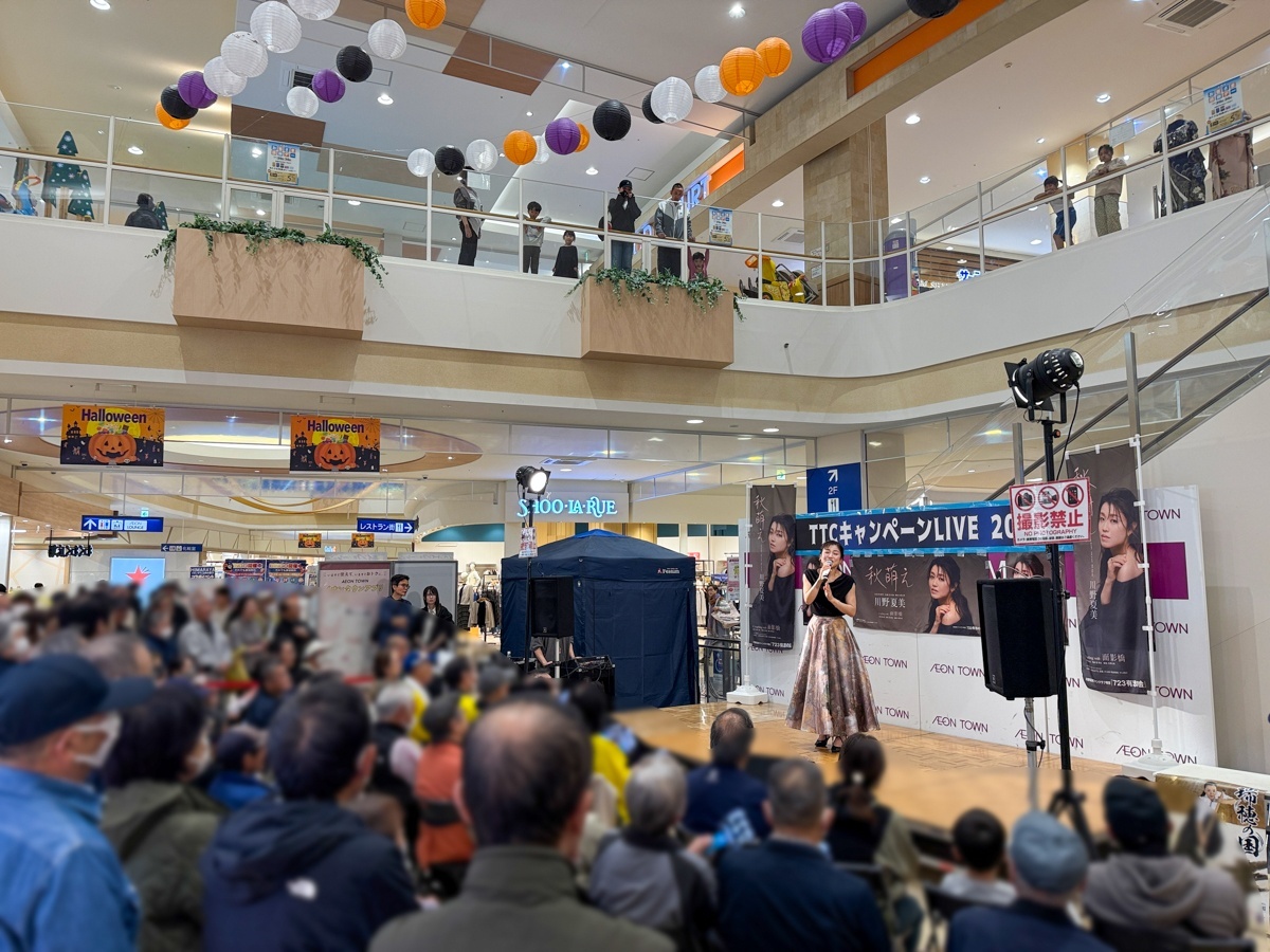 10月26日(日)、イオンタウンおゆみ野のステージには、山西アカリさん、BlueBirdsの皆さん、川野夏美さんが登場!ハロウィンムード漂う店内で、たくさんのお客様に応援いただきました!