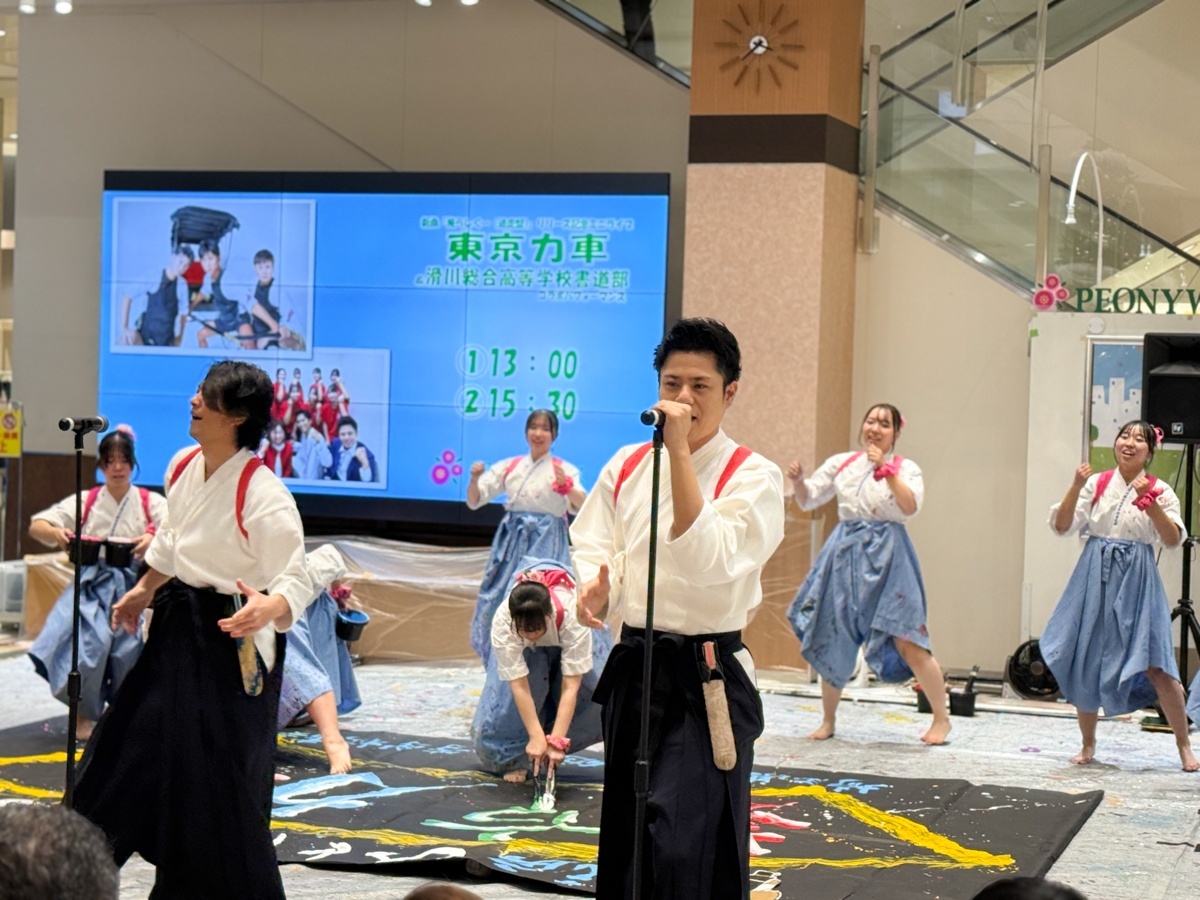 ピオニウォーク東松山では、東京力車と滑川総合高等学校書道部のコラボイベントが開催!