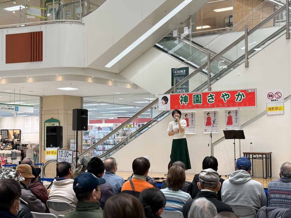 【ユアエルム成田】メリークリスマス!神園さやかさん&舞乃空さんから歌のプレゼント 12月25日 2025年12月25日 本日12月25日(木)、クリスマスにぴったりのスペシャルライブが開催されました。 神園さやかさんと舞乃空さんという、実力派のお二人が心温まる歌声を届けてくださいました。クリスマス当日の開催ということもあり、訪れた皆さまにとって心に残る特別な一日となったことでしょう。 開催日程・出演者 ■12月25日(木) 13:00〜 神園さやか さん 15:00〜 舞乃空 さん 🎵 新曲「人は恋して花を詠む」発売中 新曲CDのご購入はこちら 今回披露された最新CDは、当サイト 楽園堂オンラインショップ でもお求めいただけます。 新曲一覧はこちら Tweet «前 次» 楽園堂ブログ