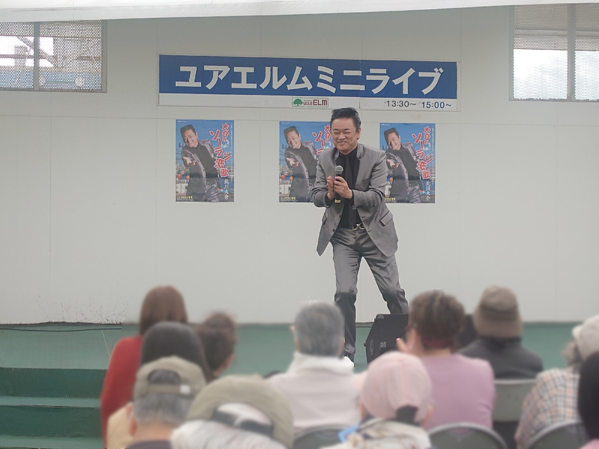 【ユアエルム八千代台】北川大介が新曲キャンペーンを開催!3月7日 2026年03月07日 ユアエルム八千代台連続キャンペーン、本日は北川大介さんが登場! 明るい雰囲気と陽気なトークに歌の世界へ誘う歌唱で、お客様を北川ワールドに引き込んでいきました。 2回目のステージではスタンドマイク?(来場いただいたお客様なら分かっていただけるはず)を使用したパフォーマンスも披露し、魅力的な2ステージとなりました! 開催日程・出演者 ■3月7日(土) 13:00~,15:00~ 北川大介 🎵 新曲「大介のソーラン恋歌」発売中 新曲CDのご購入はこちら 今回披露された最新CDは、当サイト 楽園堂オンラインショップ でもお求めいただけます。 新曲一覧はこちら Tweet 次» 楽園堂ブログ