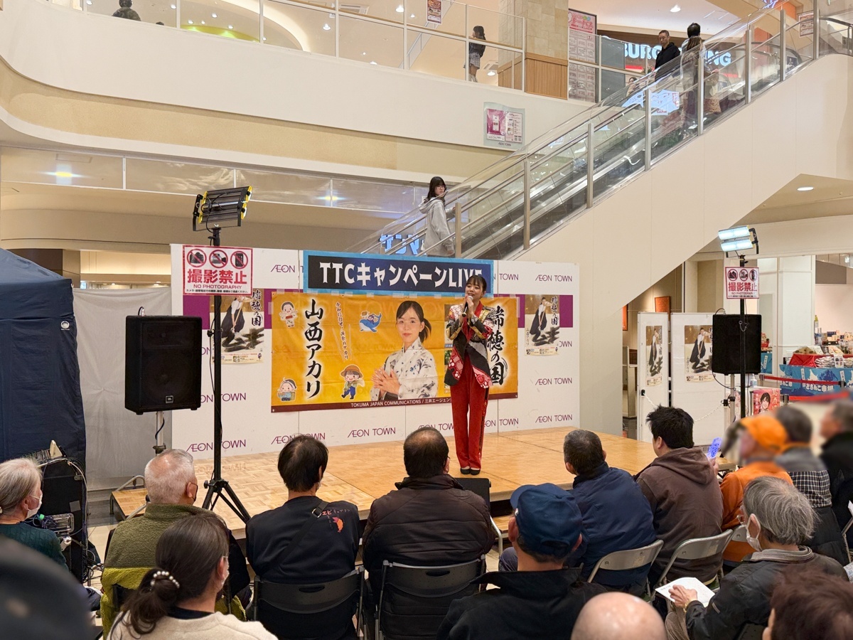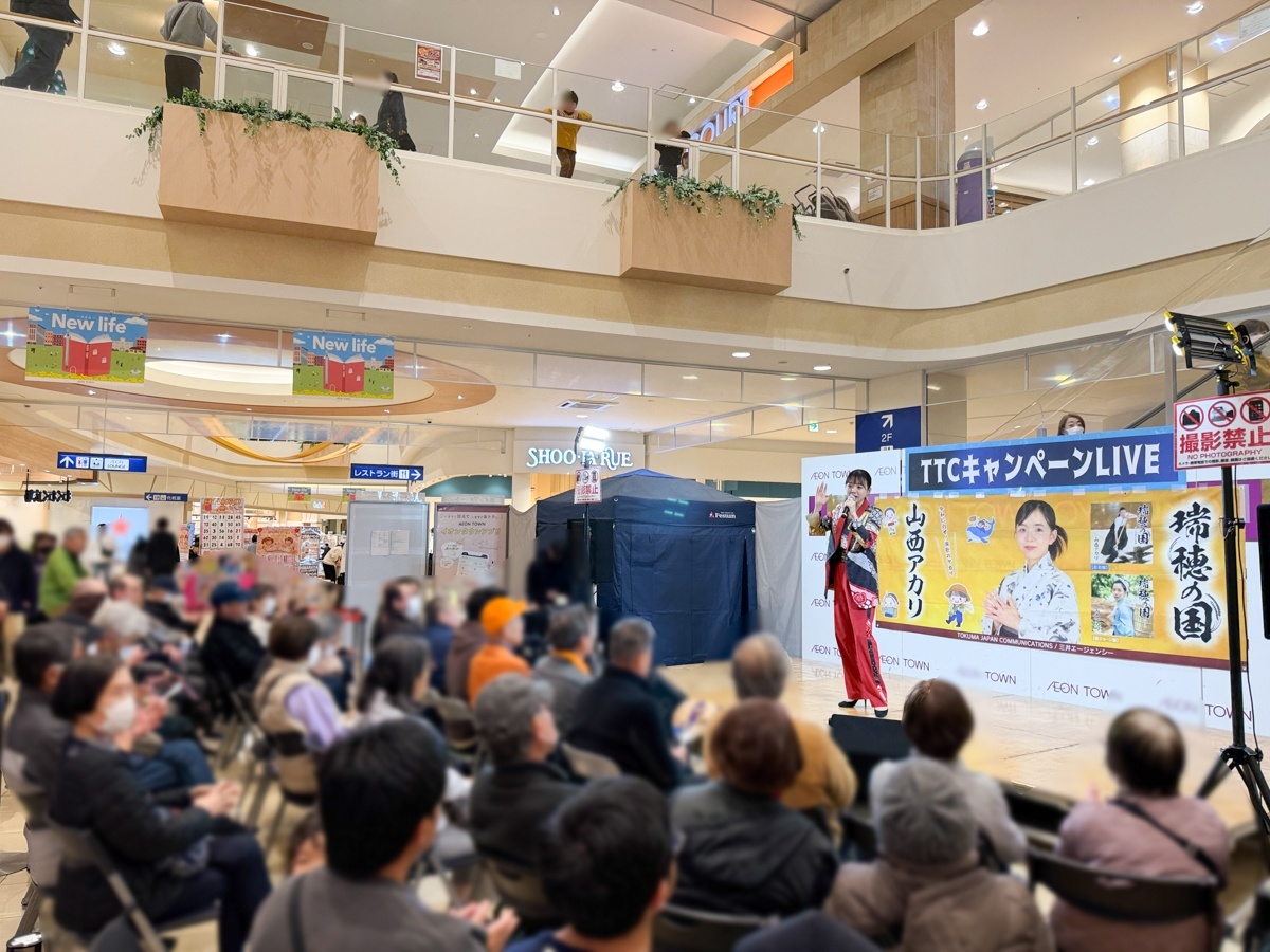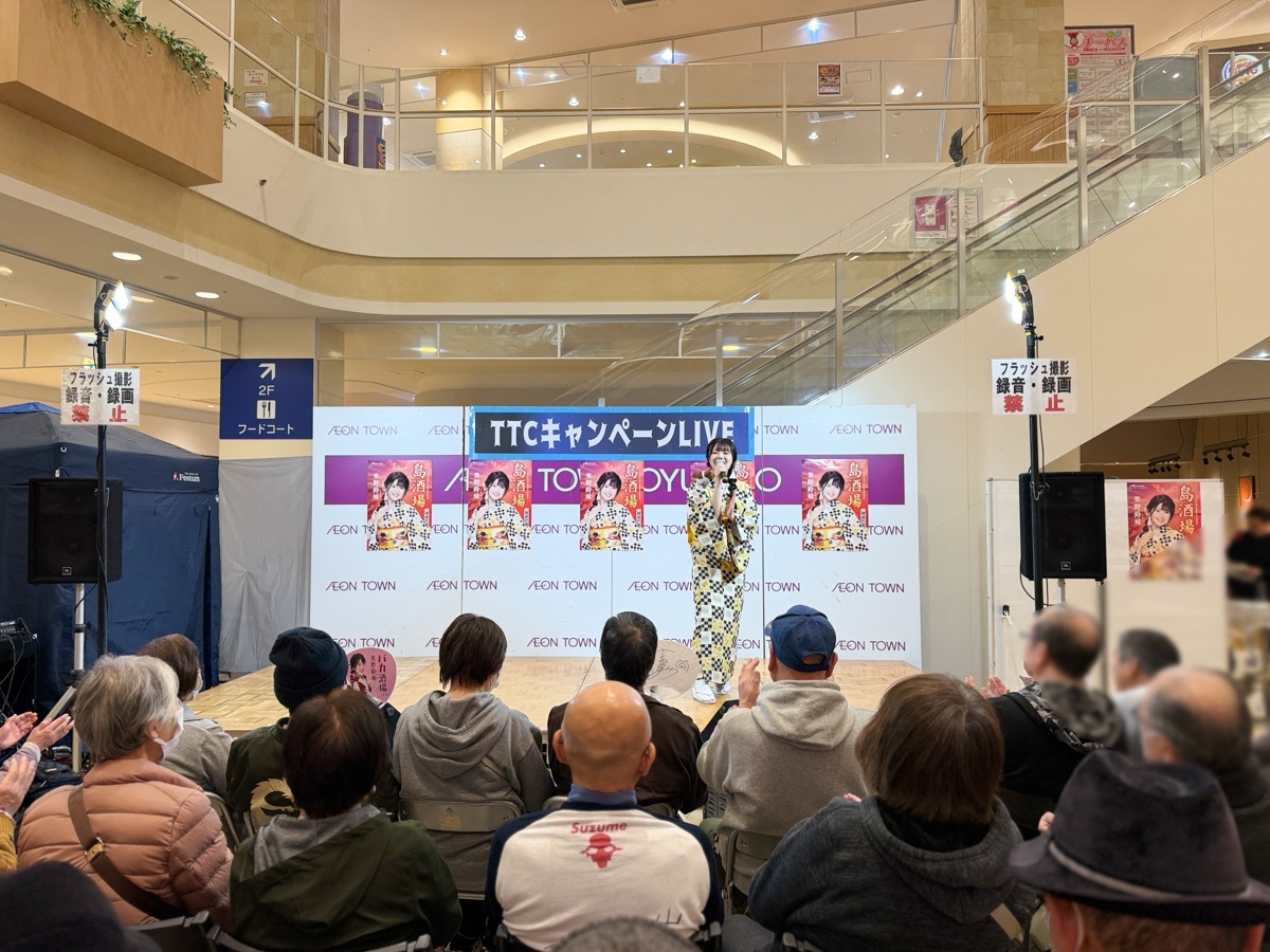 【TTCキャンペーンライブ】里野鈴妹、岩佐美咲、山西アカリがイオンタウンおゆみ野で新曲キャンペーン!3月14日 2026年03月14日 3月14日、ホワイトデーのこの日、イオンタウンおゆみ野でTTCキャンペーンライブが開催されました! この日の出演は、里野鈴妹さん、岩佐美咲さん、山西アカリさん。各回、特典会までご参加いただきました皆様、ありがとうございました♪ イオンタウンおゆみ野 開催日程・出演者 ■3月14日(土) 12:00〜 里野鈴妹 🎵 新曲「島酒場」発売中 13:30〜 岩佐美咲 🎵 新曲「合鍵」発売中 15:00〜 山西アカリ 🎵 新曲「瑞穂の国」発売中 新曲CDのご購入はこちら 今回披露された最新CDは、当サイト 楽園堂オンラインショップ でもお求めいただけます。 新曲一覧はこちら Tweet 次» 楽園堂ブログ