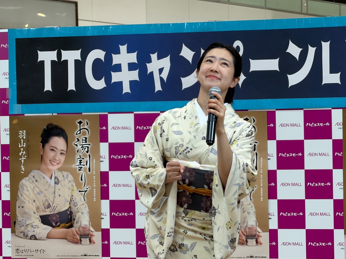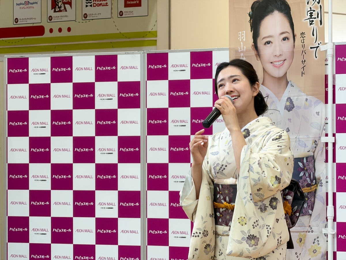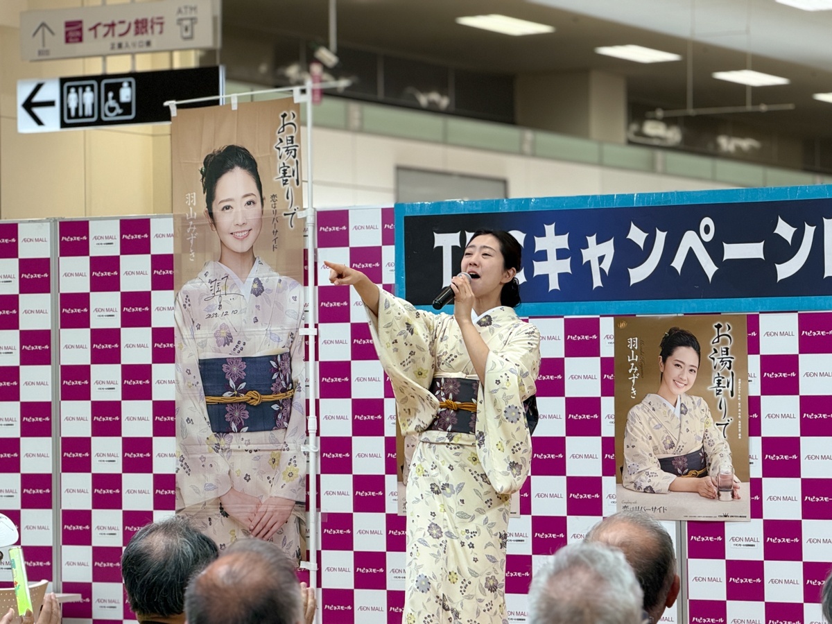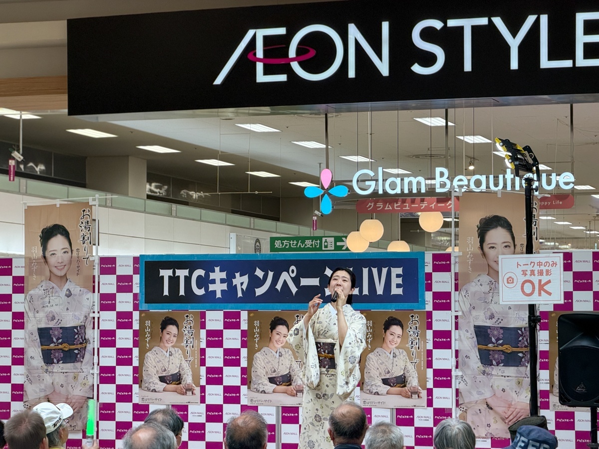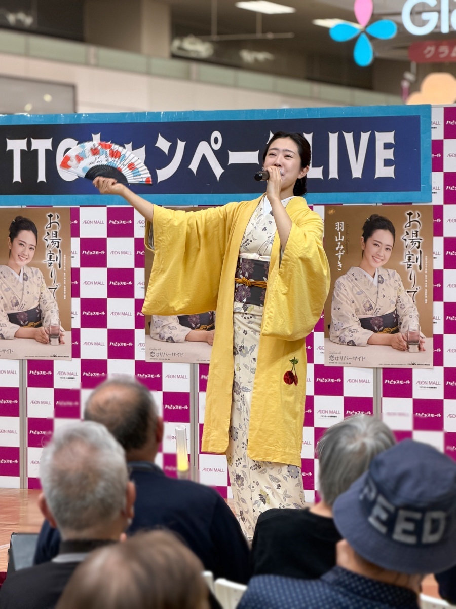 そしてこの日のトリを飾ったのは、羽山みずき さん。『10周年記念コンサート~夢は今もめぐりて~』のリリースに加え、新曲『お湯割りで』も好調なセールスを記録しています。さらに、可愛らしいアクリルキーホルダーの特典も登場し、ファンにとってはたまらない嬉しいサービスとなりました♪