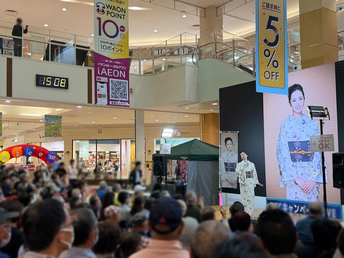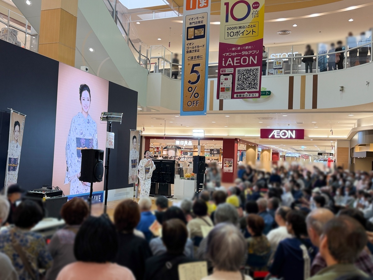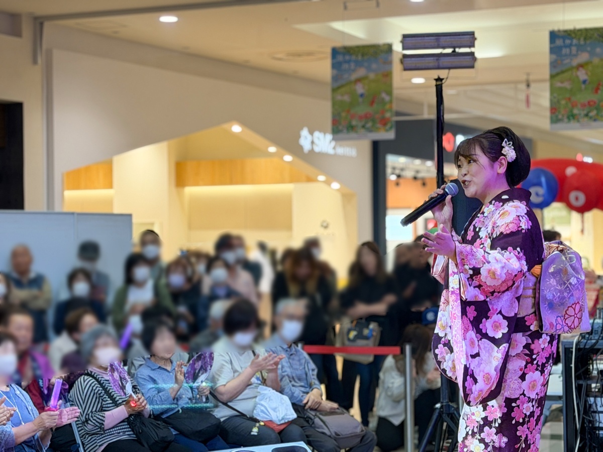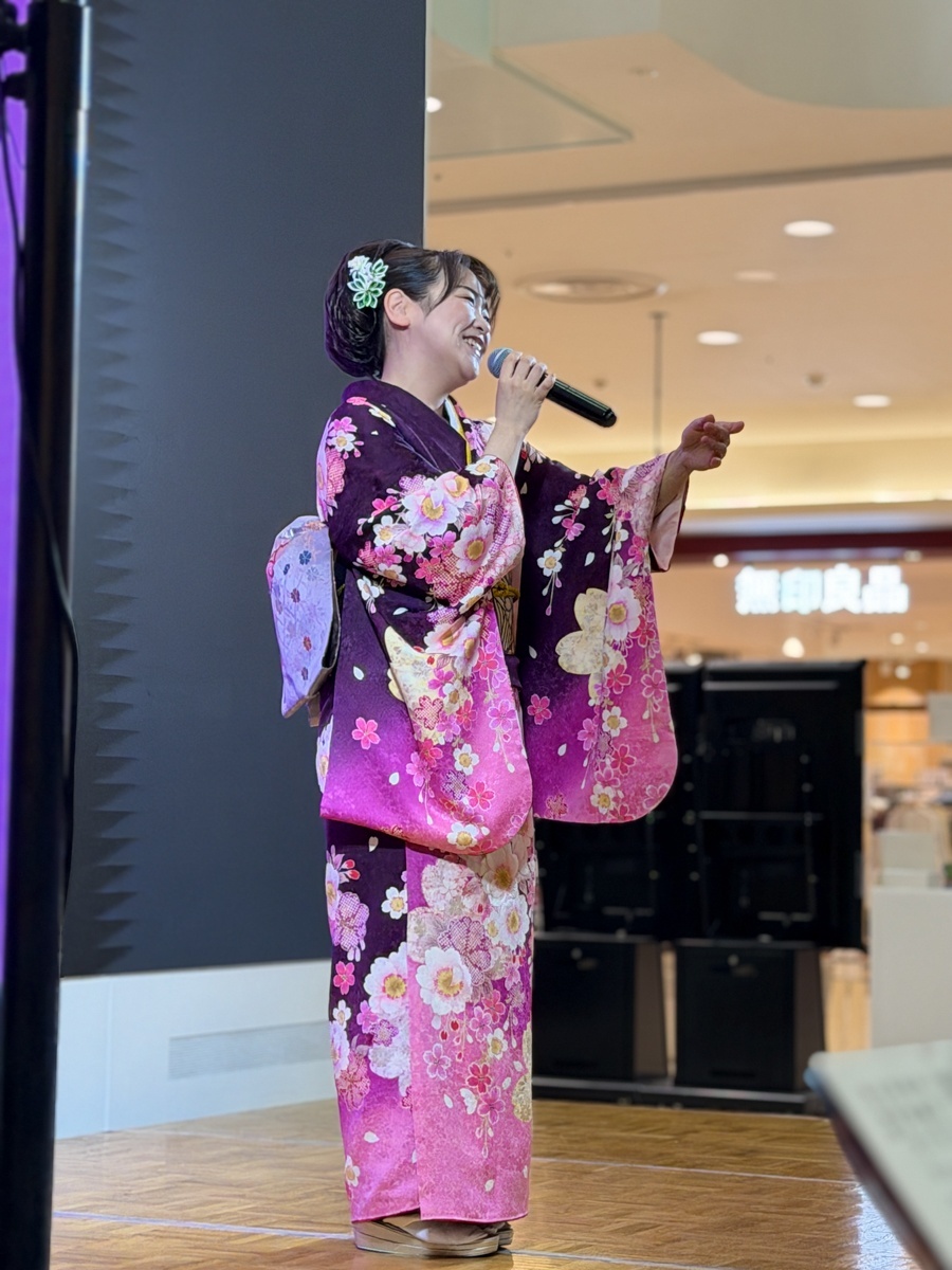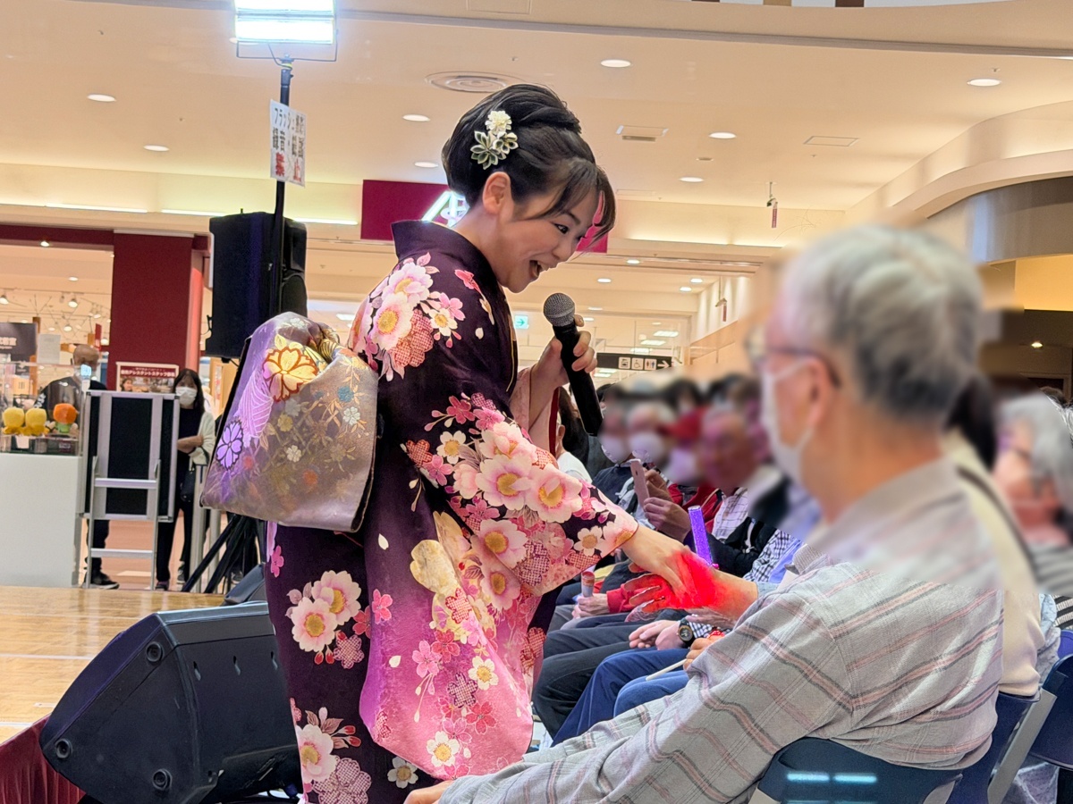 12時からは、明るく爽やかな笑顔が魅力の平山花羽さんが登場。デビューシングル『あじさい坂』を引っ提げ、イオンモール下妻のステージに初登場しました。デビューからわずか3か月とは思えないほど、多くのファンが応援に駆けつけてくださいました。個包装で食べやすい岩下の新生姜、楽しみです笑