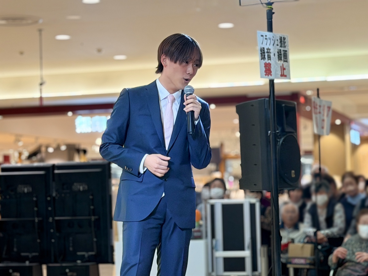 続いては、地元・茨城県坂東市出身の中村唯人さん。新曲『青春みれん』の発売週ということもあり、多くの応援団が会場に集結。100枚を超えるCDをお買い求めいただき、特典会には長蛇の列ができました。爽やかな18歳の“演歌男子”。茨城出身ということで、県内のCDショップからも全面的な応援を受けています。