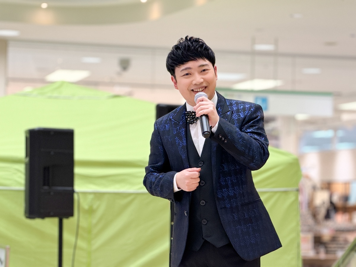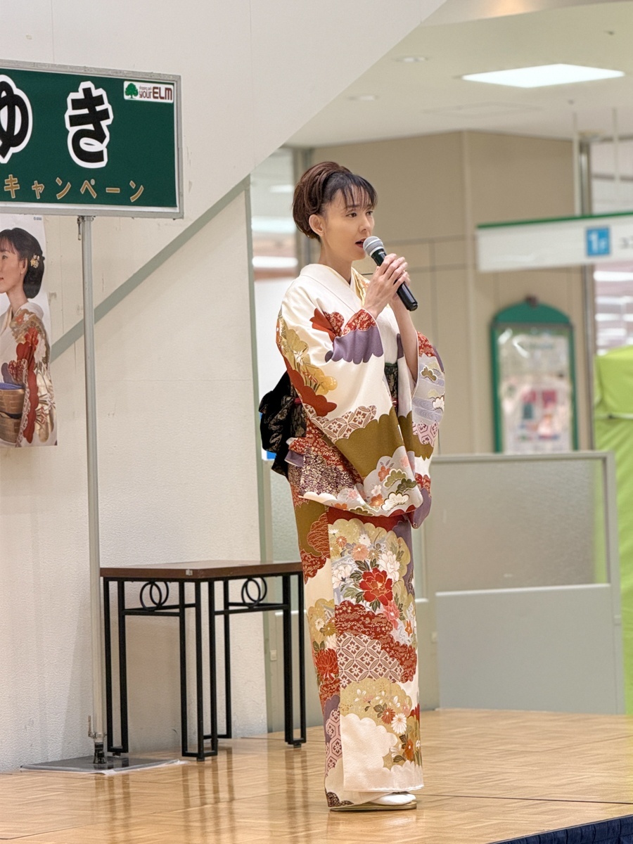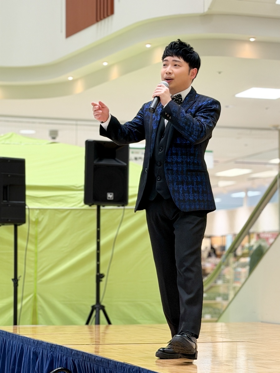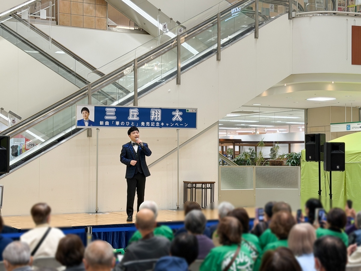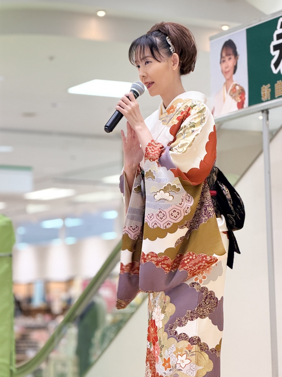 15時の永井みゆきさんは新曲『ゆるし川』キャンペーン。永井さんは昨年、新曲発売直後に交通事故に巻き込まれるという困難に見舞われましたが、3ヶ月の休養を経て見事に復活!この日は、多くのファンが温かな声援とともに駆けつけ、会場は熱気に包まれました。困難を乗り越えたからこそ響く、優しくも力強い歌声。元気にステージに立つその姿に、会場全体が勇気をもらったひとときでした。