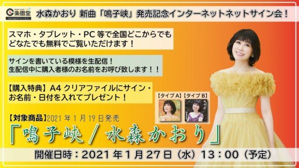 水森かおり 新曲『鳴子峡』発売記念インターネットサイン会【1月27日楽園堂YouTubeチャンネル】 [TKCA-91321]