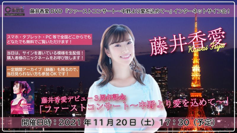 藤井香愛『ファーストコンサート~中野より愛を込めて~』発売記念インターネットサイン会【11月20日楽園堂YouTubeチャンネル】