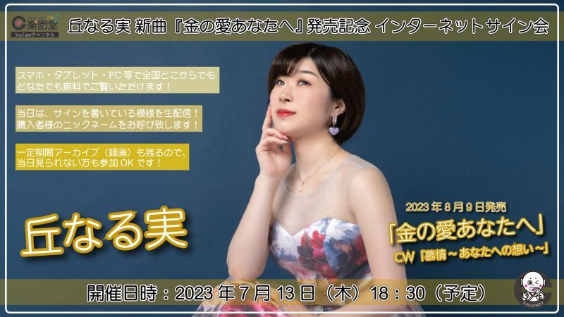 丘なる実 新曲『金の愛あなたへ』発売予約 インターネットサイン会【7月13日楽園堂YouTubeチャンネル】