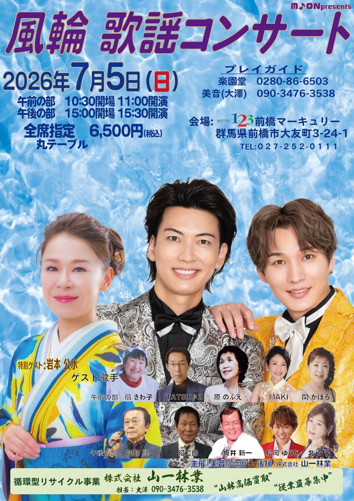 【電話注文専用】風輪歌謡コンサート 特別ゲスト:岩本公水 チケット 2026年7月5日(日) 前橋マーキュリー [20260705]